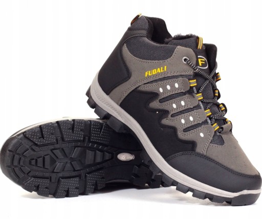 Buty męskie zimowe ocieplane, w kolorze szarym wykonane ze świetnej jakości materiałów. Wiązanie na sznurówki reguluje tęgość obuwia. Wysoka cholewka zapewnia stabilizację. Podeszwa jest klejona co zapewnia długą wytrzymałość. W całości jest ocieplony mięciutkim futerkiem, doskonały na chłodniejsze dni. Antypoślizgowa podeszwa z bieżnikiem poprawia amortyzację stopy.
