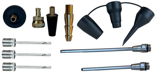 - Komplet przedłużek akcesorii i końcówek do pompowania rowerów, piłek, materacy, motorów, samochodów