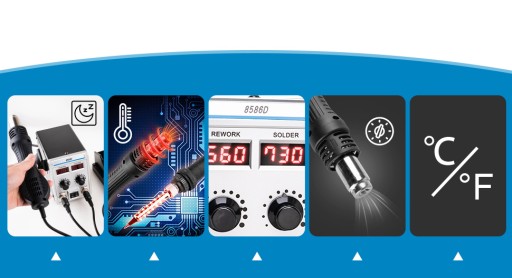 • Zakres temperatur lutownicy: 180–500°C (356–932°F)