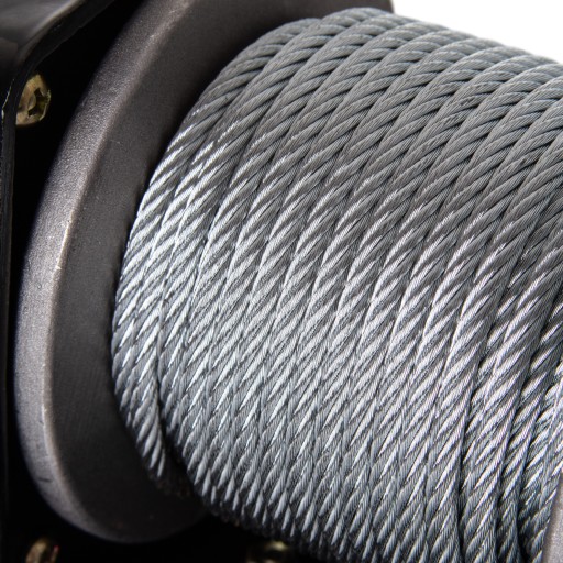 Lina stalowa odporna na skręcanie o długości 15 m umożliwia wyciąganie w trudnych warunkach.