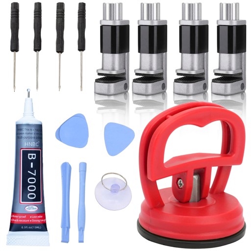 Rosfix LCD Repair Set 4w1 – Zestaw GSM: narzędzia 10w1 + klej B7000 15 ml + przyssawka 55 mm + 4x imadło LCD | Do naprawy telefonów i ekranów