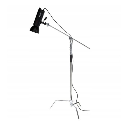 Dzięki kołowrotkowi, który łączy statyw z belką poprzeczną (ramieniem), można regulować zarówno kąt nachylenia ramienia względem statywu, jak i pozycjonować wysięgnik w kierunku pionowym. Ramię zakończone jest z jednej strony trzpieniem 16 mm z gwintem 1/4", a z drugiej 3/8", dzięki czemu możemy wykorzystywać wiele akcesoriów studyjnych bez konieczności stosowania przejściówek.