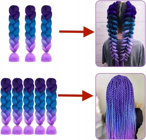 ✔️ Płynne przejścia kolorów (efekt ombre) – efektowne przenikanie barw sprawia, że każdy warkocz wygląda niepowtarzalnie i stylowo.