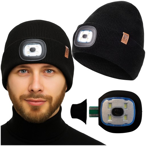 CZAPKA MĘSKA ZIMOWA ROBOCZA Z LATARKĄ LED WYWIJANA DWUWARSTWOWA SPORTOWA
