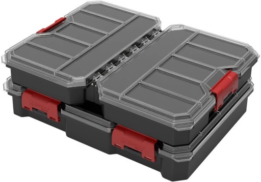 Zastosowanie przezroczystej pokrywy pozwala jednym rzutem oka ocenić zawartość organizera bez potrzeby jego otwierania. To praktyczne rozwiązanie znacznie skraca czas pracy i ułatwia organizację narzędzi.