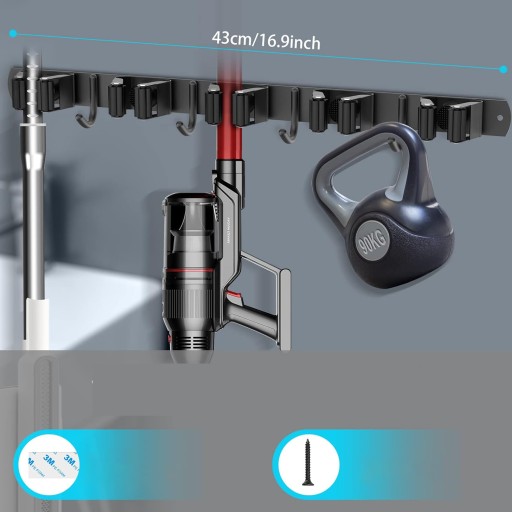 - ☑️Dzięki uchwytowi utrzymasz porządek w środkach czystości i z łatwością przechowasz miotłę, mop, ściągaczkę, szufelkę, mały odkurzacz, grabie, łopatę i inne narzędzia.