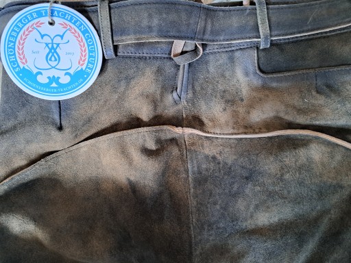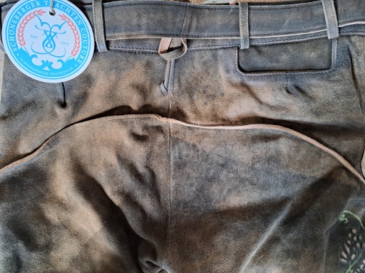 Spodnie skórzane 100% w stylu vintage z paskiem EU52, Schöneberger Trachten