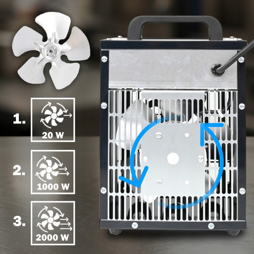 ✅ 3-stopniowa regulacja mocy (20/1000/2000 W) – pełna kontrola nad komfortem cieplnym