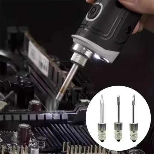 Ten praktyczny zestaw pozwala na precyzyjne, wygodne i czyste lutowanie. Zawiera trzy różne końcówki o odmiennych kształtach, dzięki czemu z łatwością dopasujesz grot do konkretnego rodzaju pracy. Dodatkowo dołączono dwie gąbki czyszczące, które ułatwią utrzymanie narzędzia w idealnym stanie.