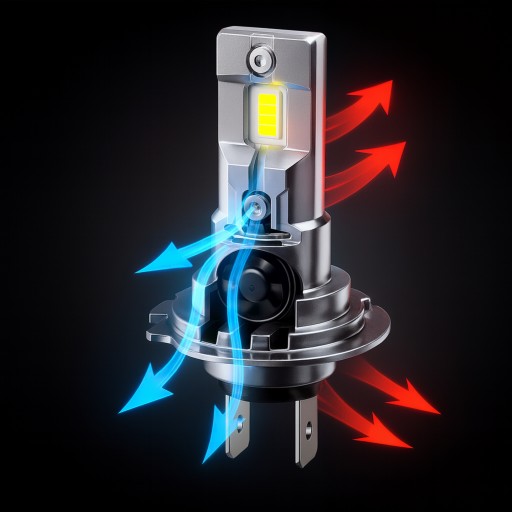 - ♨️Radiator chłodzący (wentylator) wbudowany jest w środek żarówki, przez co mieści się w każdej oprawie, w porównaniu z żarówkami z wentylatorami, które są z tyłu , co może utrudniać zamontowanie gumy przeciwpyłowej, a to przyczyni się do wymiany lampy już po kilku miesiącach.