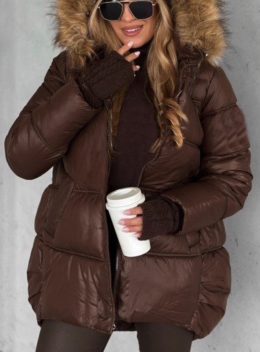 PIKOWANA KURTKA KAPTUR ODPINANE FUTERKO BRĄZOWA M P8