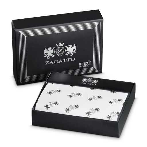 Wszystkie portfele Zagatto® posiadają skuteczne zabezpieczenie RFID. Większość kart obecnie posiada funkcję płatności zbliżeniowych, co ułatwia złodziejom pozyskanie danych i środków pieniężnych. Taka ochrona gwarantuje pewność, że karty są chronione przed skanowaniem.