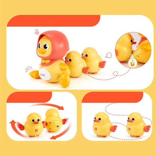 Muzyczna Kaczuszka składa się z mamy kaczki i dwóch małych kaczuszek, które dzięki muzyce i zabawie będą towarzyszyć Twojemu maluchowi i zapewnią mu radość we wczesnych etapach rozwoju.