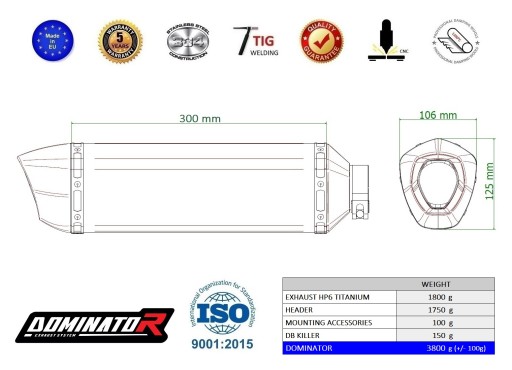 Układ wydechowy DOMINATOR z tłumikiem HP6 Tytan pasuje do motocykli: