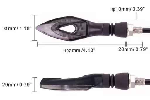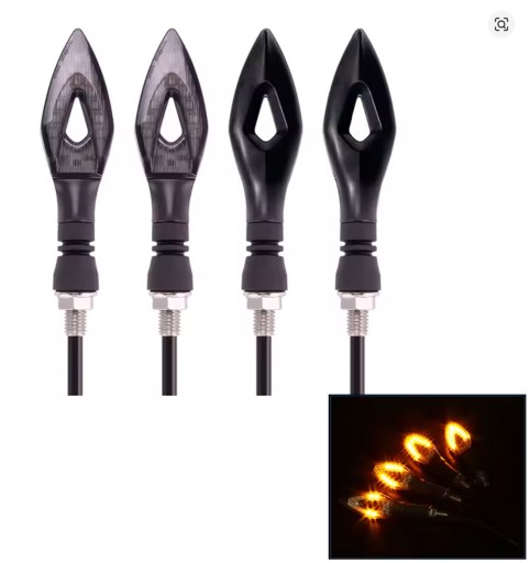 Nowoczesny wzór kierunkowskazów zapewni każdemu pojazdowi świeży i atrakcyjny wygląd. Jest to zestaw kierunkowskazów LED przeznaczony dla osób chcących osiągnąć unikatowy wygląd swoich motocykli.
