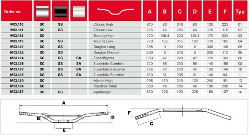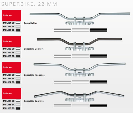 KIEROWNICA MOTO. ŚR 22 MM STALOWA SREBRNA