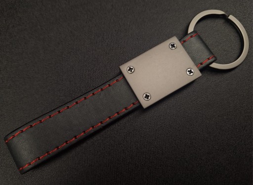 Stylowy i solidny brelok Volkswagen R-Line, idealny dla każdego fana marki. Wykonany z metalu oraz wytrzymałego materiału w kolorze czarnym z czerwonymi przeszyciami.