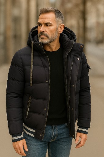 КУРТКА-ПУХОВИК МУЖСКАЯ ЗИМНЯЯ УТЕПЛЕННАЯ С КАПЮШОНОМ, ЧЕРНАЯ M