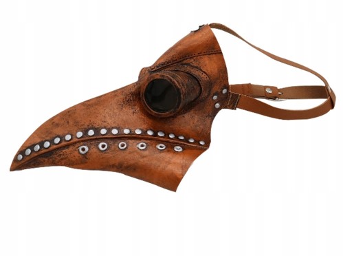 - Realistyczna maska z długim dziobem – inspirowana klasycznym strojem lekarza plagi.