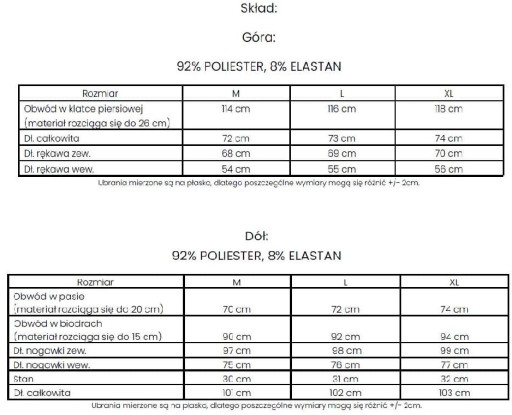 Skład: 92% POLIESTER, 8% ELASTAN