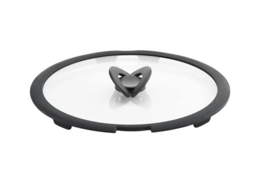 - Praktyczna szklana pokrywka z kompaktowym uchwytem składanym i odporną na zarysowania silikonową krawędzią