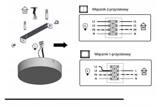 ✅ Współpracuje z włącznikiem jedno lub dwu przyciskowym