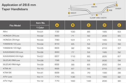 ACCEL KIEROWNICA ALUMINIOWA 28,6 MM TAPER MX WZÓR YAMAHA YZ WYSOKA (7075-T6) ERGAL KOLOR ZŁOTY (SZER. 803MM, WYS. 92MM)