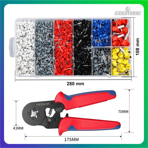 ZACISKARKA DO TULEJEK PRZEWODÓW KABLI PRASKA KONEKTORÓW 1800 SZT 0.25-10mm²