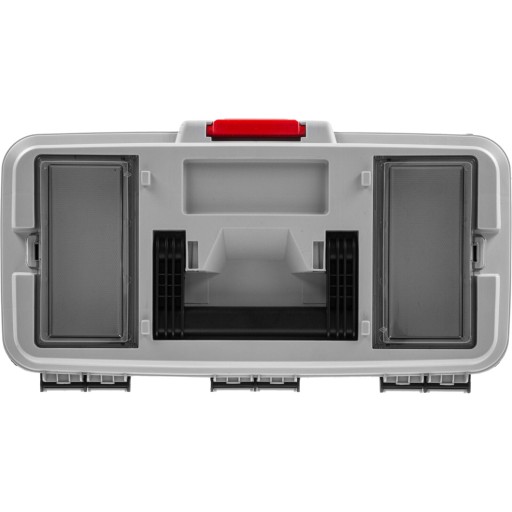 - Pokrywa z organizerami – dwa praktyczne organizery w pokrywie umożliwiają przechowywanie drobnych elementów, jak śruby, wkręty czy kołki.