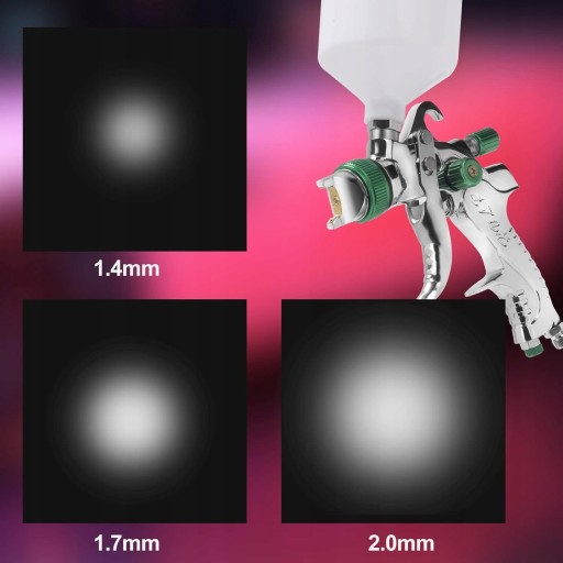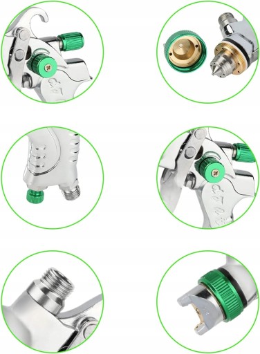 Dzięki wymiennym dyszom o różnych rozmiarach, pistolet HVLP może sprostać różnym wymaganiom malarskim, zapewniając doskonałe rezultaty przy każdej aplikacji.
