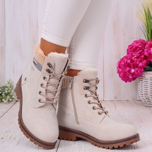 Damskie, wsuwane traperki w kolorze szarym. Posiadają ocieplenie w postaci futerka- idealne na zimę❗ Posiadają zapięcie na suwak, co umożliwia łatwe zakładanie. ❄ Stabilna, gruba podeszwa dobrze amortyzuje stopę oraz chroni przed zimnem. Wykonane z dobrych jakościowo materiałów. Prosty fason sprawia, że pasują do wielu stylizacji.