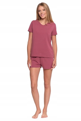 PIŻAMA DAMSKA BAWEŁNIANA Z KRÓTKIM RĘKAWEM I SPODENKAMI MORAJ RÓŻOWA L