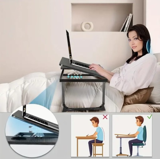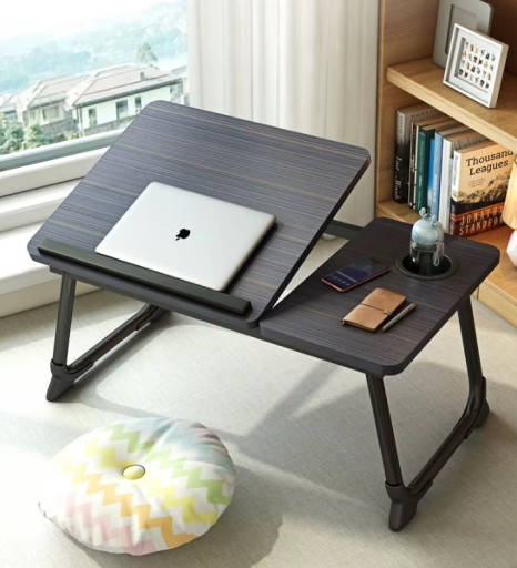 ✅ Praktyczny stolik z możliwością nachylenia głównego blatu, idealny do pracy z laptopem lub czytania książek.