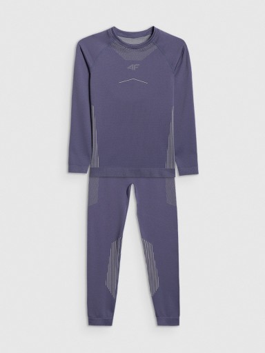 Bielizna termoaktywna junior marki 4F to zestaw 2-częściowy – komplet składa się z koszulki z długim rękawem i legginsów.