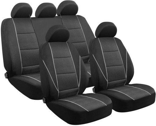 Zestaw 9-częściowy obejmuje pokrowce na dwa fotele przednie, tylną kanapę dzieloną oraz komplet zagłówków. Uniwersalne dopasowanie do większości modeli samochodów osobowych.