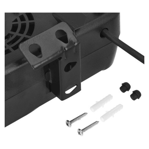 Grzejnik samochodowy wyposażono w podwójne zabezpieczenie przed przegrzaniem, a także co pewnie najważniejsze, w zabezpieczenie przed przewróceniem, które automatycznie go wyłącza, gdy grzejnik się przewróci. Przełącznik na obudowie. W zestawie jest mocowanie do montażu na stałe.