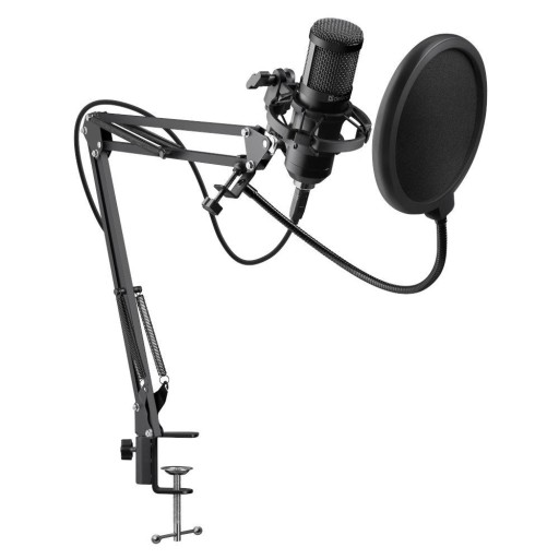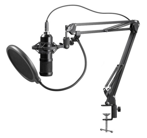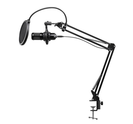 Informacje dodatkowe: Kompatybilny z komputerami PC i laptopami z gniazdem USB W zestawie składany statyw i filtr Antywibracyjne i wstrząsoodporne mocowanie Szybka instalacja, nie wymaga sterowników Trwała i lekka aluminiowa konstrukcja Regulowany kąt nachylenia Osłona wiatrowa dla mikrofonu w zestawie Pantograf (stojak) dla mikrofonu w zestawie Filtr pop w zestawie