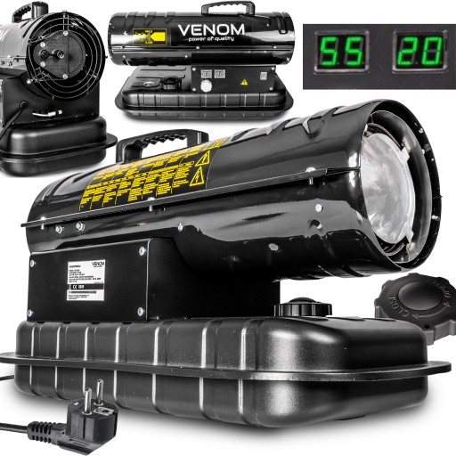 ✅ VENOM PowerHeat 20kW™ – nagrzewnica olejowa o mocy 20 000 W, która w kilka minut podnosi temperaturę w pomieszczeniu, zapewniając szybkie i efektywne ogrzewanie hal, warsztatów, magazynów i garaży.