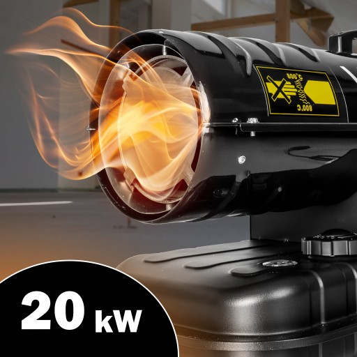 ✅ Moc 20 kW – błyskawiczne ogrzewanie pomieszczeń, hal, warsztatów, magazynów i placów budowy.