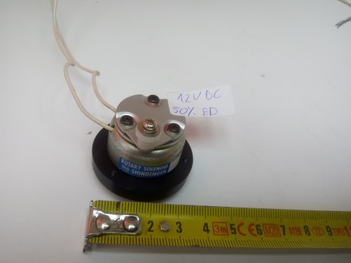 Elektromagnes ciągnący obrotowy 2E31187R Schindengen, napięcie zasilania 12V, cykl pracy około 50%, elektromagnes po załączeniu obraca się o około 45*, przetestowany sprawny