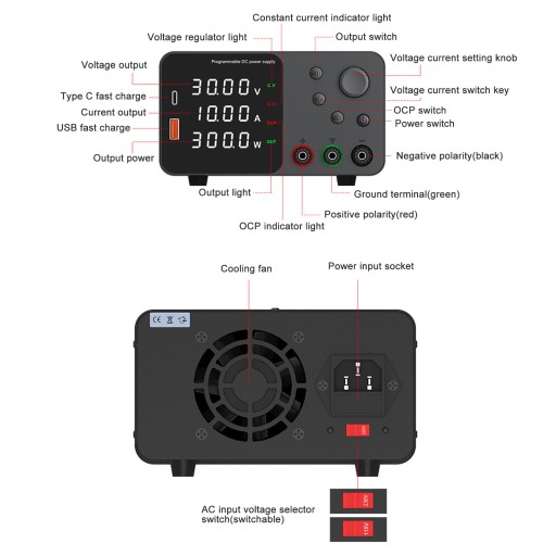 2. 4-CYFROWY WYŚWIETLACZ LED: Laboratoryjny zasilacz stacjonarny prądu stałego to profesjonalne laboratoryjne urządzenie do regulacji mocy. Podświetlany 4-bitowy wyświetlacz LED zapewnia dokładniejszy odczyt wartości napięcia i prądu, które są wyraźnie widoczne nawet w warunkach słabego oświetlenia