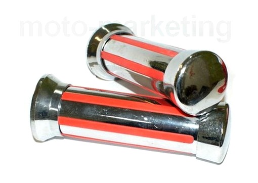 Manetki chromowane, posiadają gumowe, czerwone wstawki antypoślizgowe.