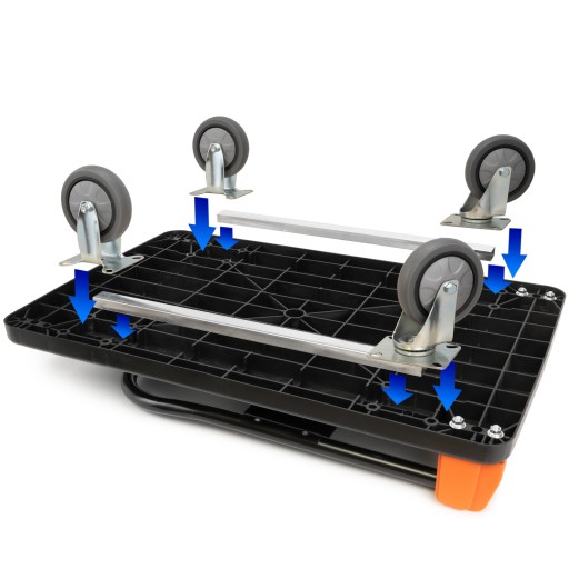 Mechanizm składania jest prosty, wygodny i umożliwia szybkie przygotowanie wózka do pracy lub schowania go po użyciu.