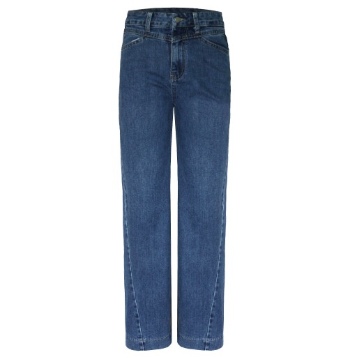 Szerokie eleganckie spodnie jeansowe damskie z wysokim stanem i delikatnymi przetarciami renomowanej marki M'Sara