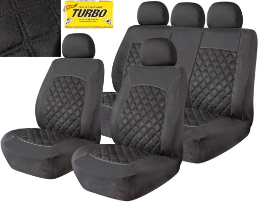 ✅Pokrowce samochodowe CZARNO SZARE na fotele uniwersalne przód tył komplet do samochodu + guma TURBO :)