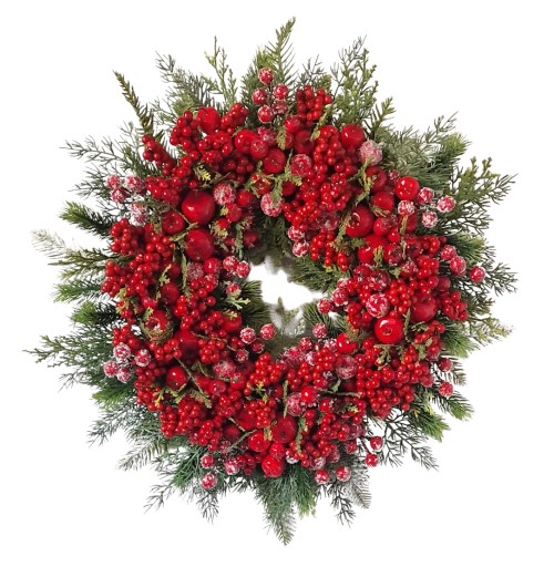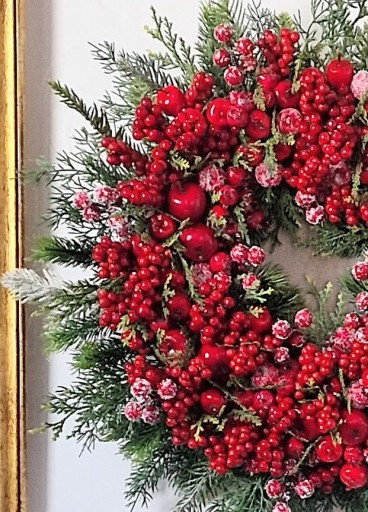 UROCZY ŚWIĄTECZNY WIANEK, Z MNÓSTEEM CZERWONYCH OWOCÓW - JABŁUSZKA, JARZĘBINY, GŁOGI ORAZ DODATKI ZIELONE