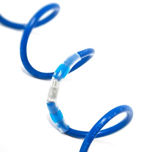 Wystarczy ogrzać złączkę gorącym powietrzem do temperatury topnienia cyny (ok. 138°C), aby ta równomiernie otoczyła skręcone przewody, tworząc trwałe i przewodzące połączenie.