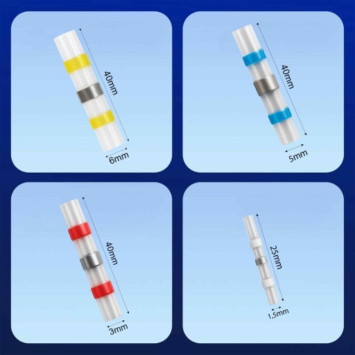 W komplecie znajdziesz aż 265 złączek z cyną oraz 535 koszulek termokurczliwych, dzięki czemu możesz wykonać setki połączeń – w domu, aucie, ogrodzie lub na łodzi. Różnorodność rozmiarów pozwala idealnie dopasować złączkę do przewodu.