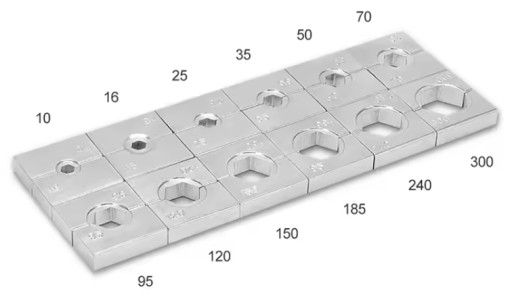 Matryce zaciskowe: 16-25-35-50-70-95-120-150-185-240-300 mm²