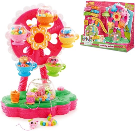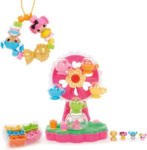 Dziewczynki moga dowolnie konfigurować i dobierać kolejność koralików, przeplatając je figurkami Lalaloopsy Tinies z dziurką do nawlekania. Powstałe naszyjniki i bransoletki to niepowtarzalne i urocze dziecięce ozdoby.
